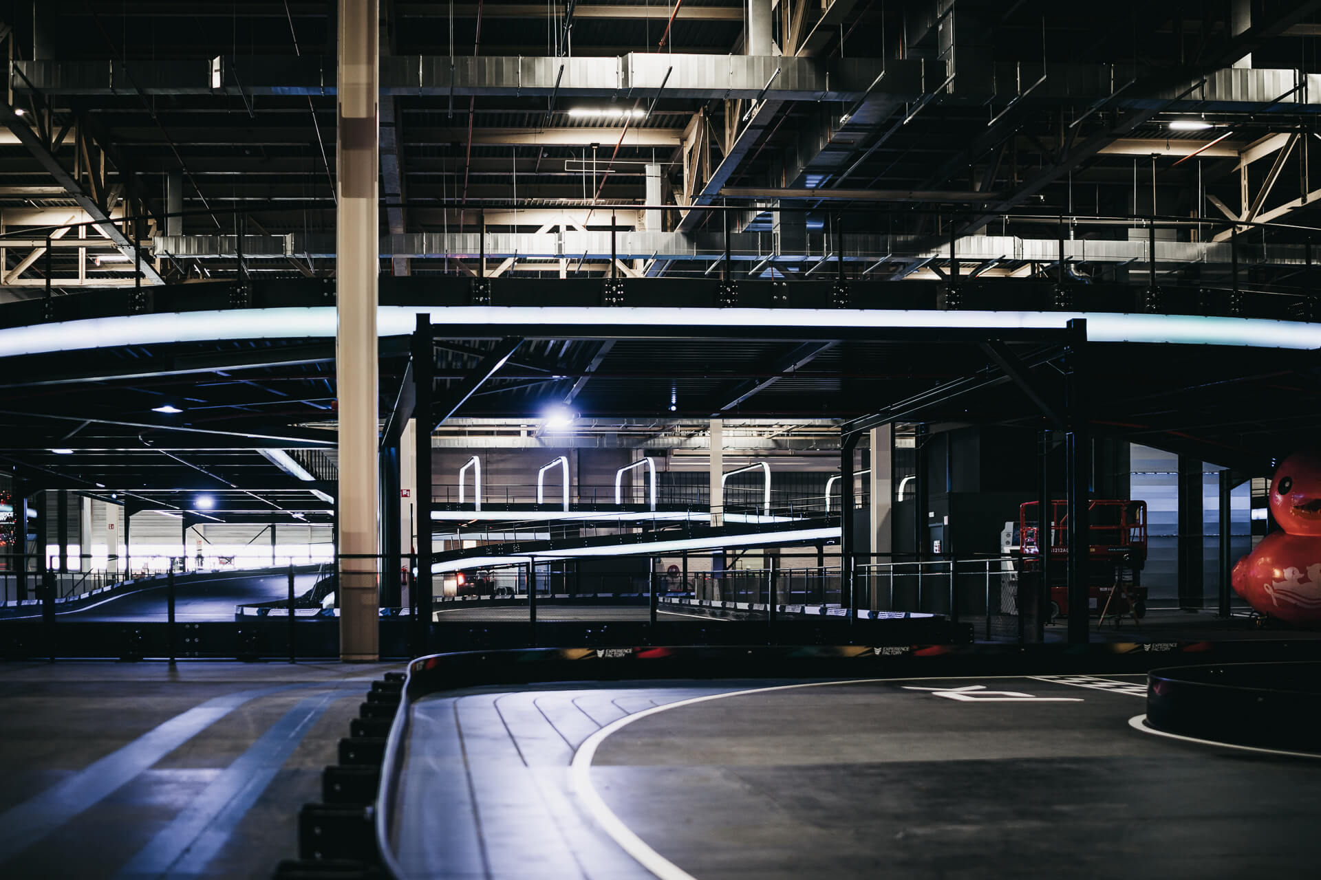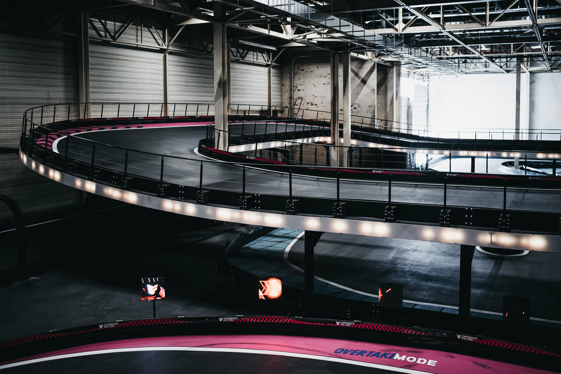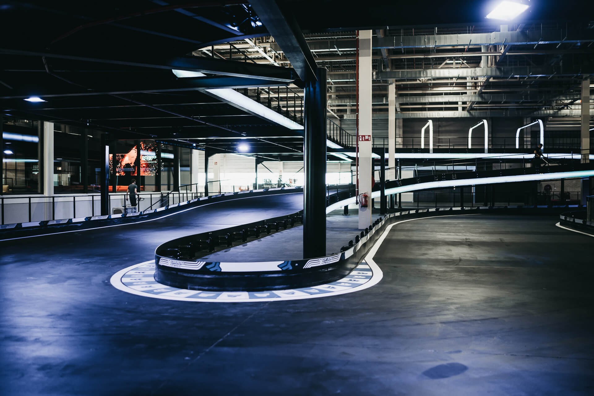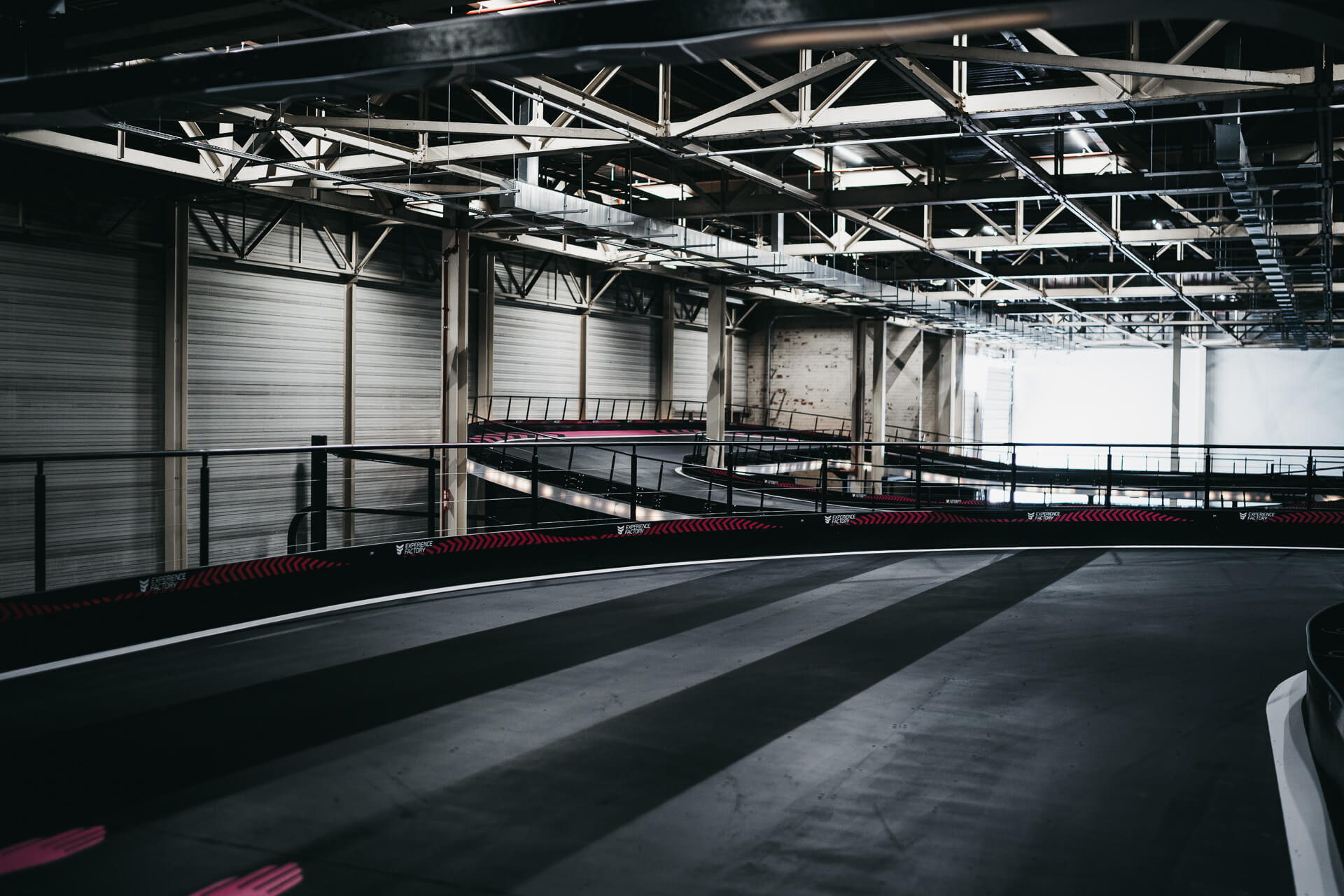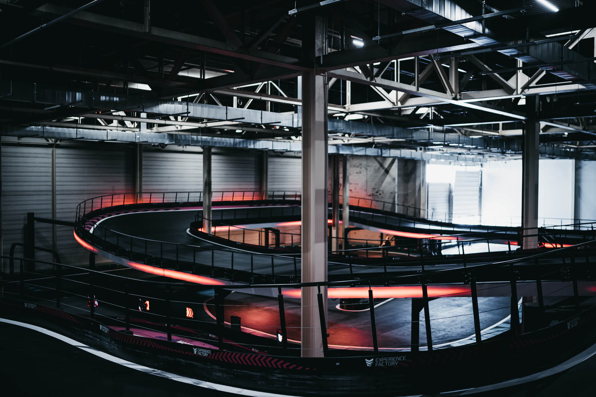 Experience Factory Antwerp is a landmark entertainment destination and a centerpiece in modern indoor karting, delivered by ProKarting as the bespoke designer and builder of the venue’s signature e-karting track. The project reimagines a former industrial hall into a high-profile competitive socializing hub, anchored by Europe’s largest 3-level indoor e-karting circuit.