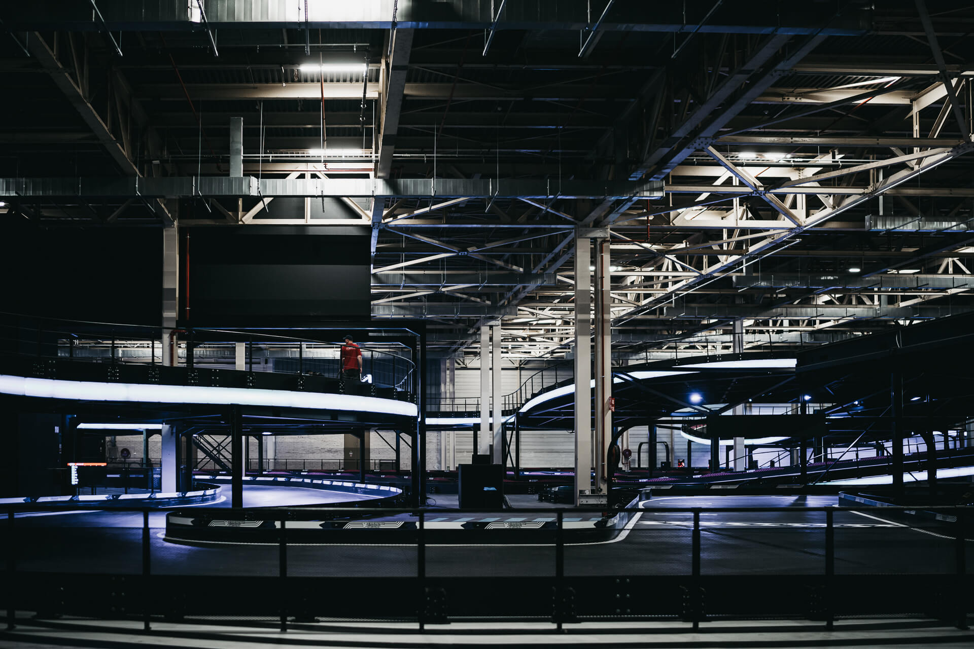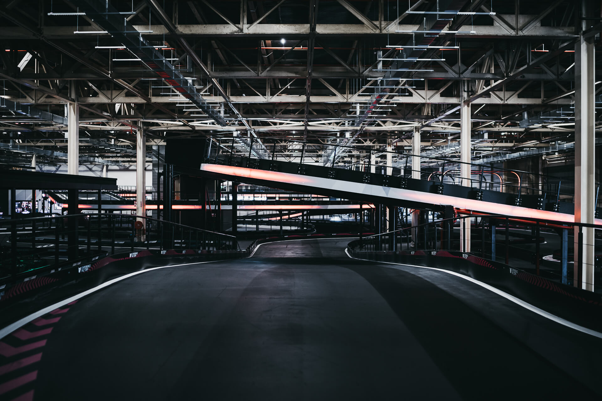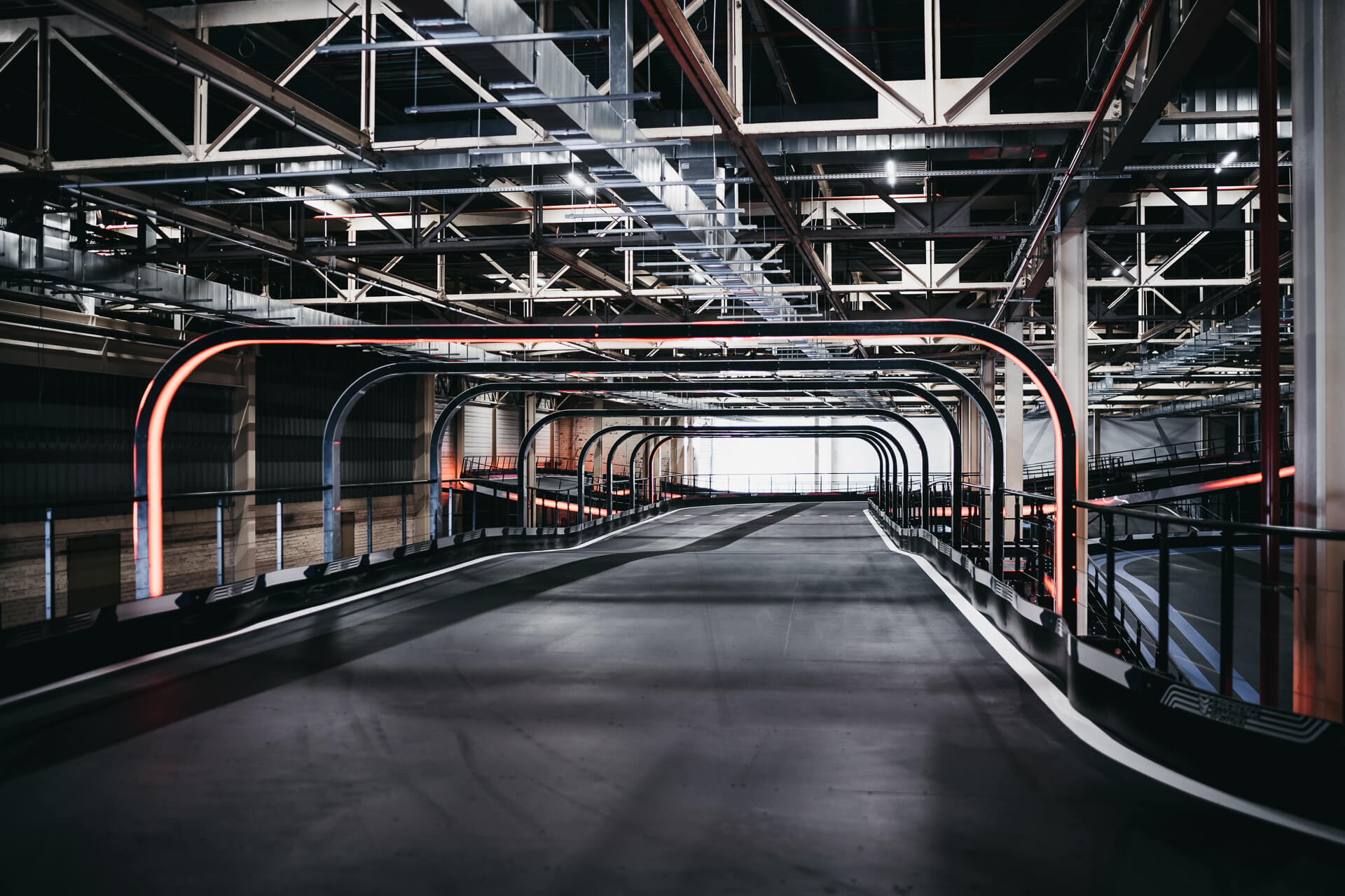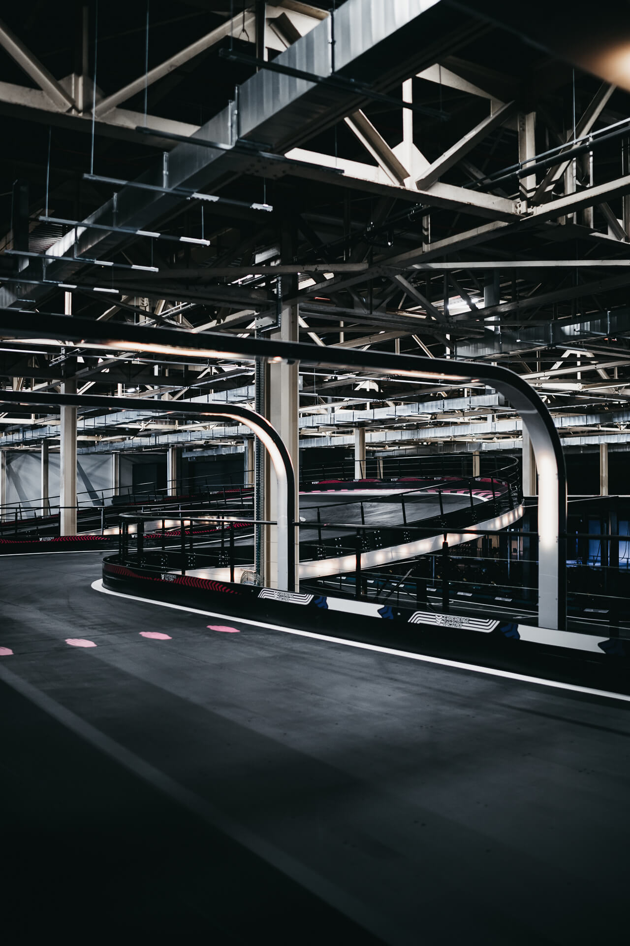 Experience Factory Antwerp is a landmark entertainment destination and a centerpiece in modern indoor karting, delivered by ProKarting as the bespoke designer and builder of the venue’s signature e-karting track. The project reimagines a former industrial hall into a high-profile competitive socializing hub, anchored by Europe’s largest 3-level indoor e-karting circuit.